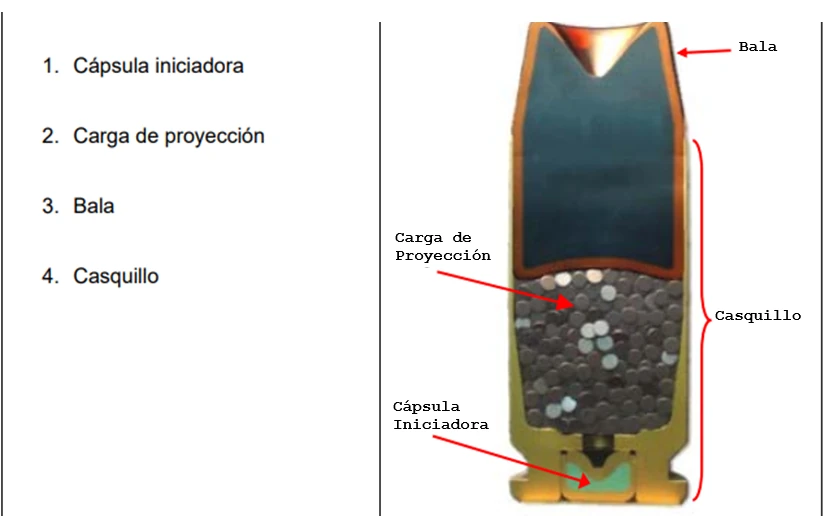 -Elemento del cartucho, que consiste en un recipiente metálico en forma tubular, es el encargado de contener la carga de proyección
