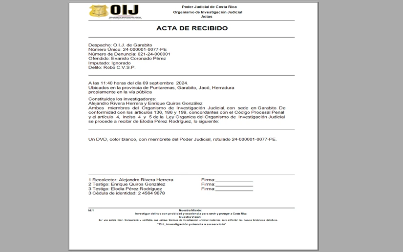 - Testimonios: declaraciones de testigos, víctimas o sospechosos.