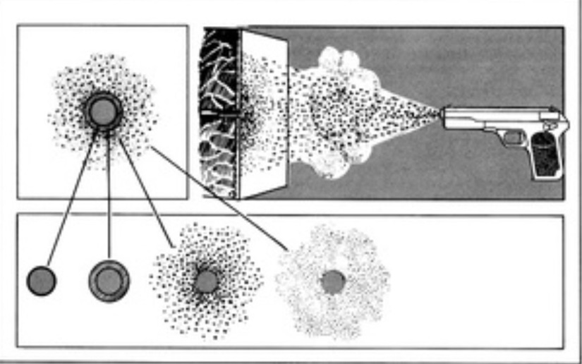 - Los residuos de disparo se forman cuando se realiza la detonación de la mezcla polvora que se encuentra dentro del casquillo, en la capsula iniciadora